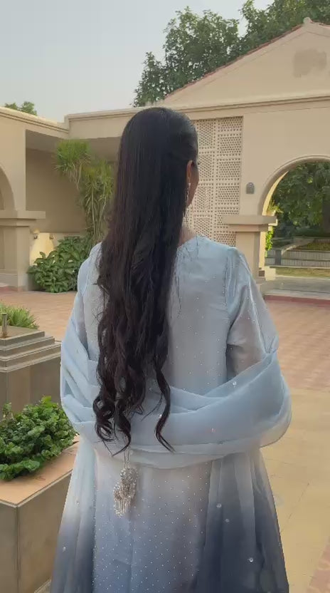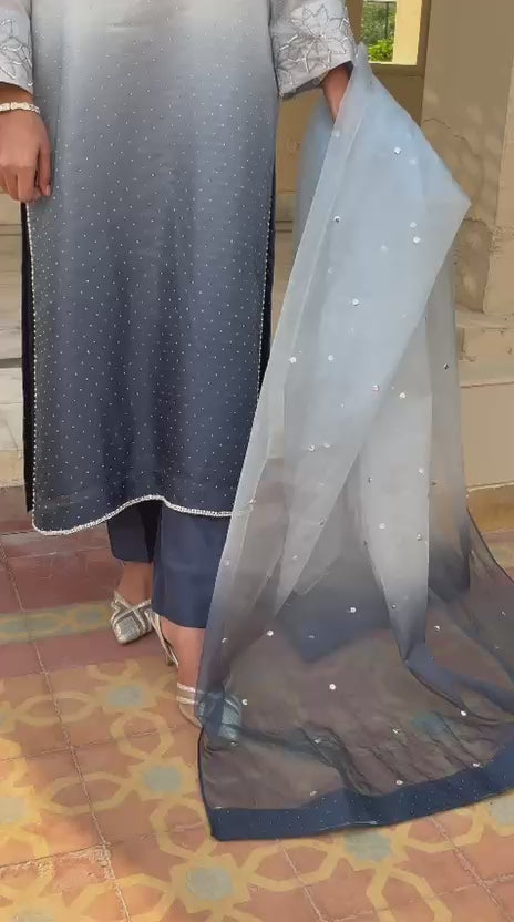 Sequence Spray work all over the Dupatta and 2 sided borders with hemming on it.